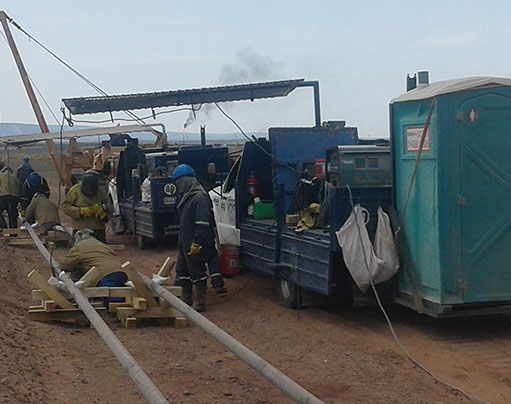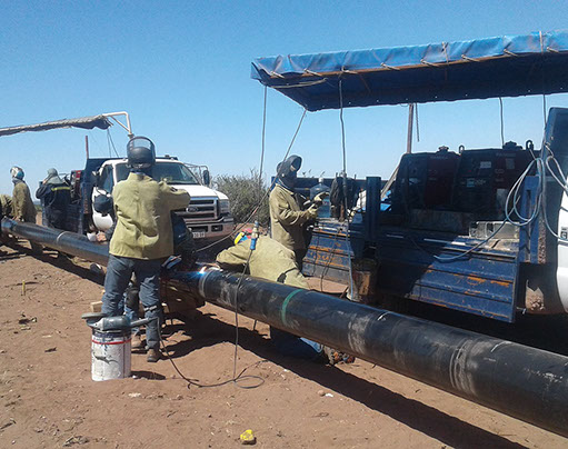 Servicios de soldadura y Montajes, Tendido de Líneas en Yacimientos Bajo del Choique, Los Toldos, Pampa de la Yeguas. Cliente: Exxon Mobil SRL.