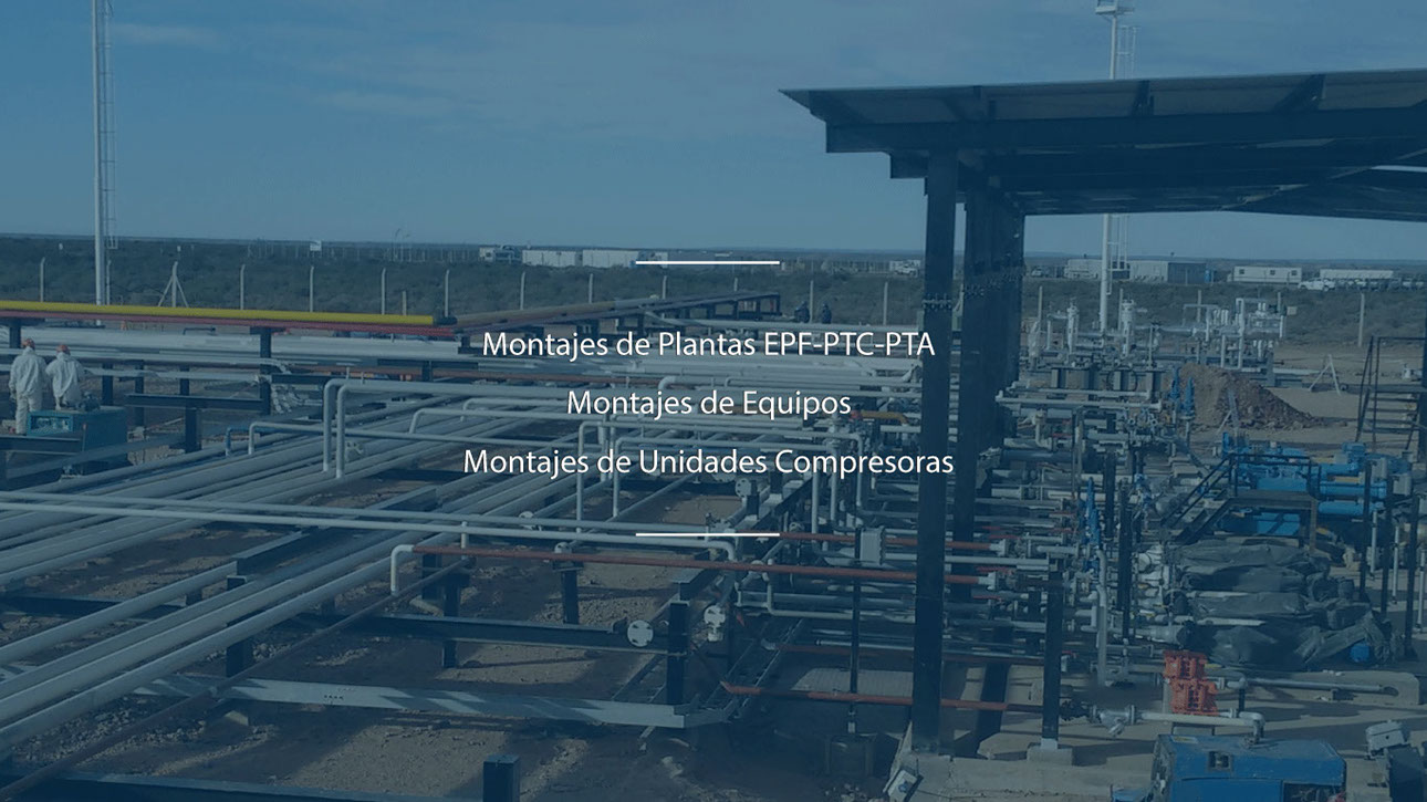 Prefabricado, Montajes de piping (29.000”), Montaje de equipos, granallado y pintado (10.000m2), construcción y montaje de soportes y estructuras (100 Ton).